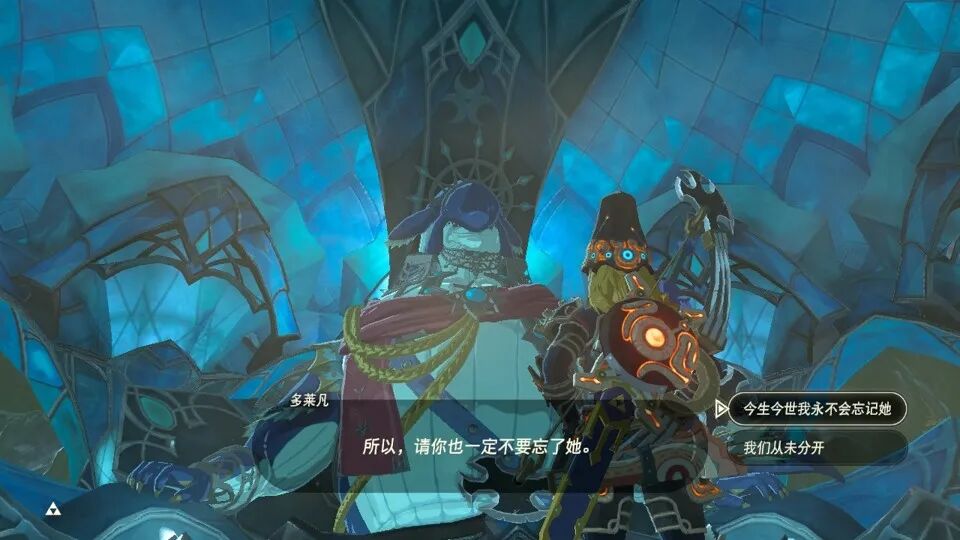 塞尔达淡化了线性剧情的设计。在游戏中,玩家需要解救四大神兽(当然不解救也可以通关),解救神兽的顺序也是由玩家自己选择且无前后关系。而且主角还需要寻找散布各地的回忆碎片,无论找寻回忆碎片的顺序如何,也不会有割裂感。游戏通过剧情和回忆,对人物的刻画也十分成功,个个性格分明,有血有肉。